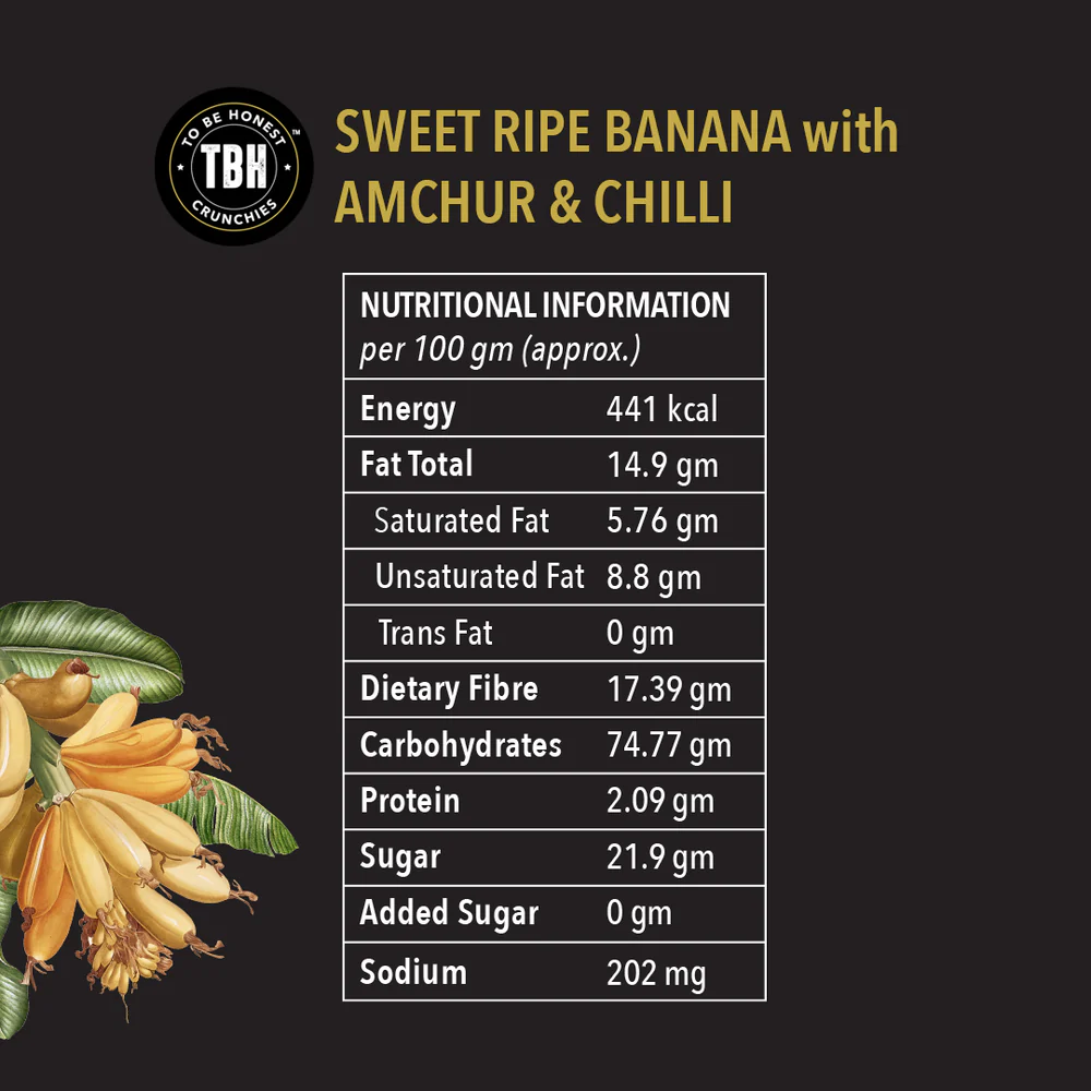 Flavoured with chilli and chatpata amchur masala, these crunchies are perfectly vacuum-cooked to keep the real sweetness of the ripe banana intact balancing all the flavours for your impulsive snack- yearning.